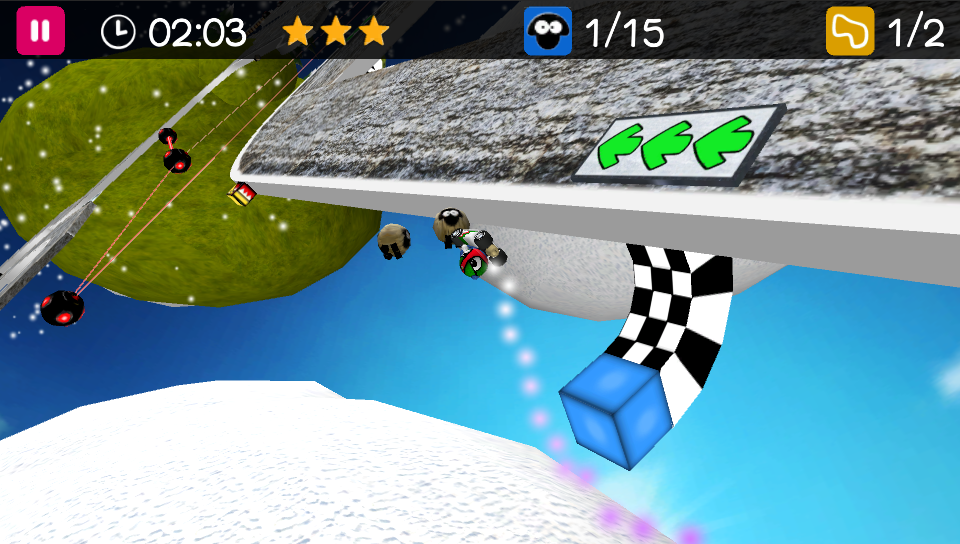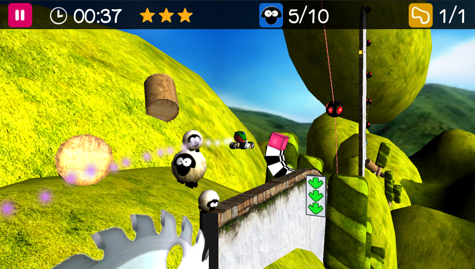 Sadly, unlike all PlayStation Mobile games there’s no option anymore for online leaderboards to compete against your friends but the continual challenge for long-term repeat play is still there as you are drawn back to keep trying to shave those extra seconds off your personal best scores or eradicate those pesky sheep. When you’re starting to get to grips with the game, you’ll be more eager to battle to get more stars to unlock the bonus tracks but as these can be done through earning two stars rather than three, but as such there’s plenty of life in the game with some of the times needed to earn three stars challenging even the best players.