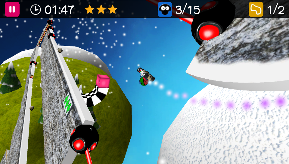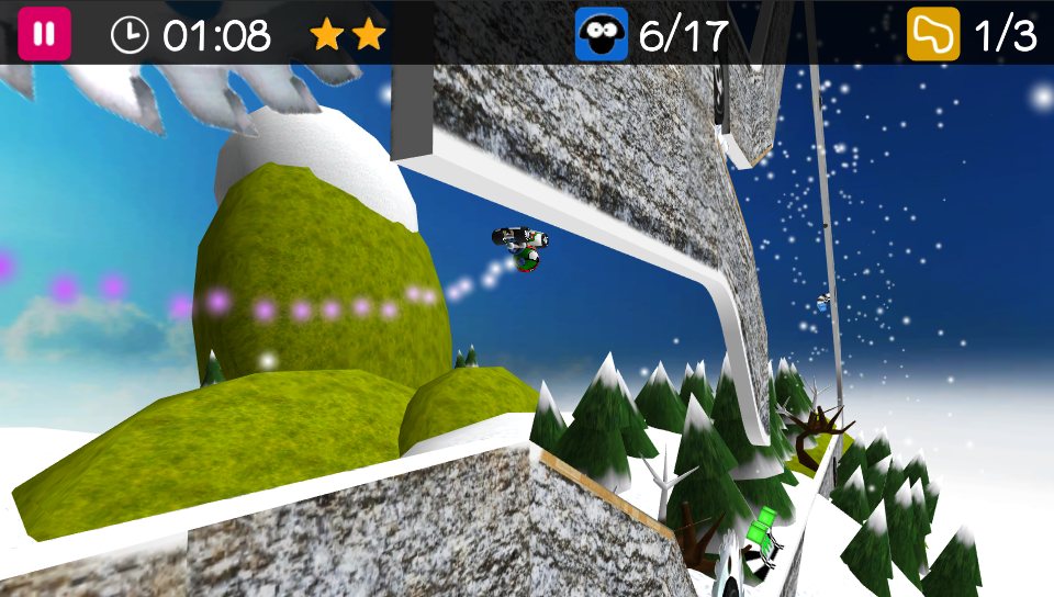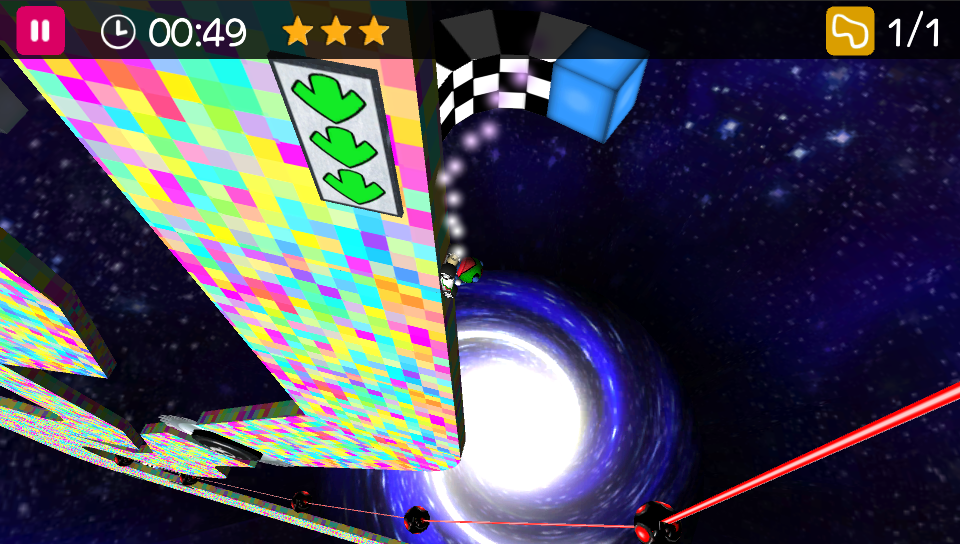 For example, to obtain better times, you can jump before a curve and you’ll acquire some speed (nothing scripted, its’ all physics), so you will have to find the correct timing to jump to obtain perfect “flying-curves”. A very good training track for this is “Twisted Pyramid 1”, but of course it works on all tracks.