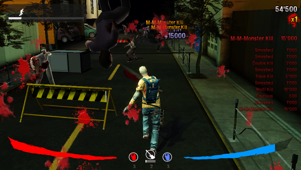 Just as important throughout is your stamina. Represented on screen by a blue bar, this is needed during the game for every action that you perform – jumping, sliding, attacking, dodging… while it replenishes over time it does mean that you can’t simply run around with a baseball bat hitting every zombie in sight because you’ll be completely exhausted long before you reach your goal… and besides, that wouldn’t make you a particularly nice person!