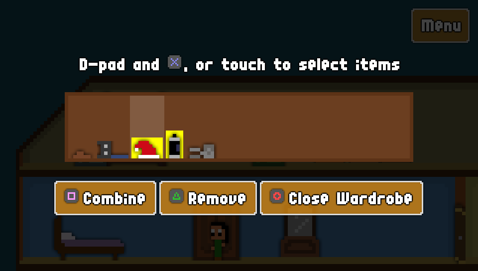 The game starts off in our heroine’s bedroom next to her wardrobe – and this will play a major part in the game as I’ll come onto in a minute. As I said at the start, it’s Halloween but you don’t have a costume so that’s the main thrust of this adventure. You have to explore the house and neighbourhood to find various items to be able to make your own costumes for Halloween. You do this by bringing things back to your wardrobe and then combining them – a brand new game mechanic added to the Quiet, Please! game engine and something that is incredibly easy to use. All manner of objects and items of clothing can be combined and you can create several costumes both for the central character and her brother and you’ll need several to be able to collect as much candy as you can. There are still plenty of other puzzles to solve in and around your house so it’s not just about getting dressed up but this is a great new game element that really helps keep the game fresh from previous entries in the series.