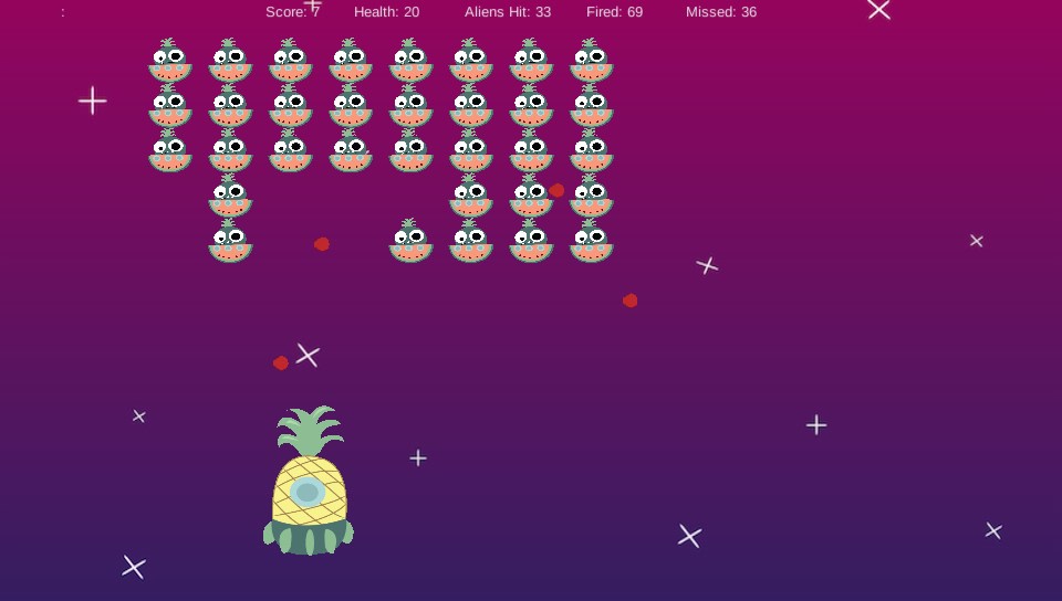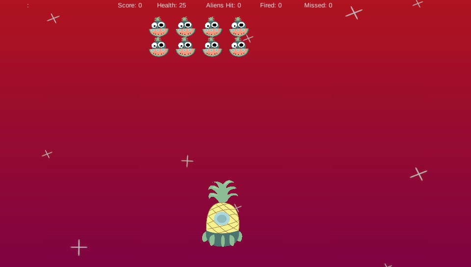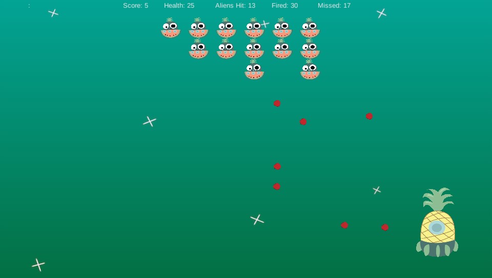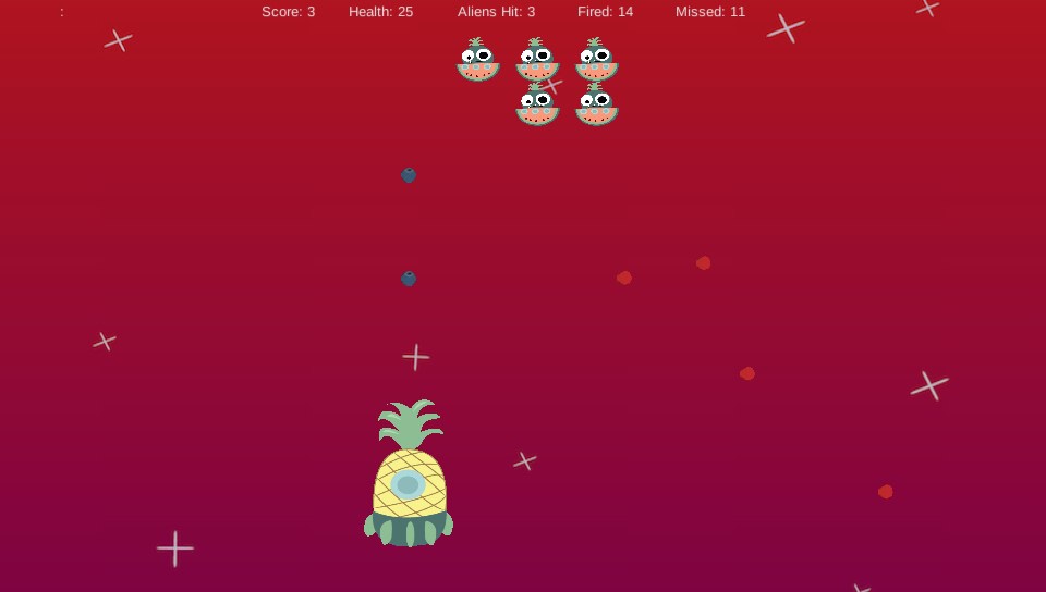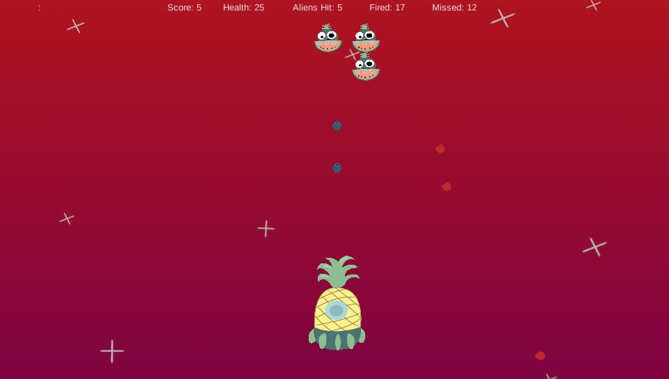 The name of the game probably gives you the biggest clue as to where these changes lie – instead of destroying wave after wave of incoming alien invaders, instead you take control of a giant space pineapple (seriously, I kid you not!) and have to fend of hordes of invading fruit bowls. Apart from a few minor tweaks, the gameplay is basically Space Invaders and you’d think that you’d be in for something remotely entertaining just with quirky visuals but unfortunately the novelty factor wears off quickly once the reality of the game itself hits home…