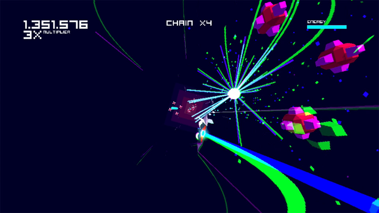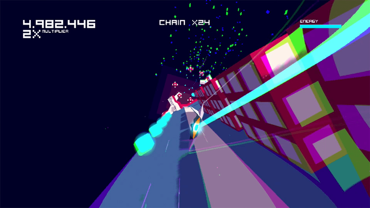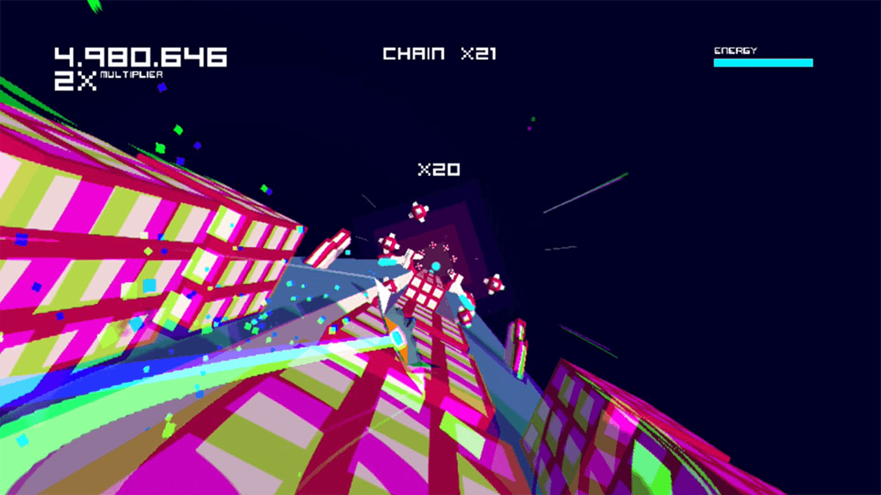 At the end of each stage you’re awarded bonuses depending on how fast you complete the level, how many cubes you manage to destroy in a row building up chains (and in turn bonus multipliers), and depending on your performance you’re awarded between one and three in-game medals per level (not counting the obligatory Trophies that are on offer). In addition to that, all of the cubes that you destroy are recorded and the more of these that you take out, the better as these enable you to unlock additional features in the game. These range from additional game modes, skins for your ship, and additional continues for use.