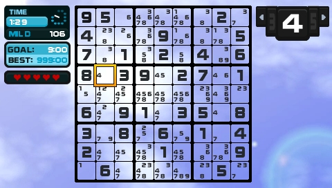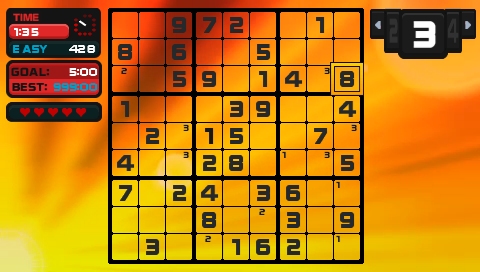 As well as RPGs, arcade games and a plethora of other genres, I have to admit that I am rather fond of puzzle games and am partial to a game or two of Sudoku. Infact, when I first purchased my PSP several years ago, this was one of the first games I purchased for it on UMD so when I had some funds spare in my PSN account I thought that it would be worth getting a second time to be able to carry around and not have to worry about taking a second console with me on the go.