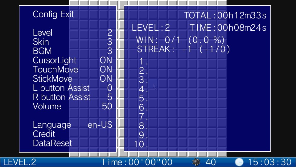 To add further icing on the cake, there’s also a stats section to the game detailing your total playing time, how many games you have won and lost and charting your overall performance throughout not to mention an on-screen clock… not just a timer to show how long you’ve been spending playing but an actual clock so you don’t get too carried away spending too much time on the game!