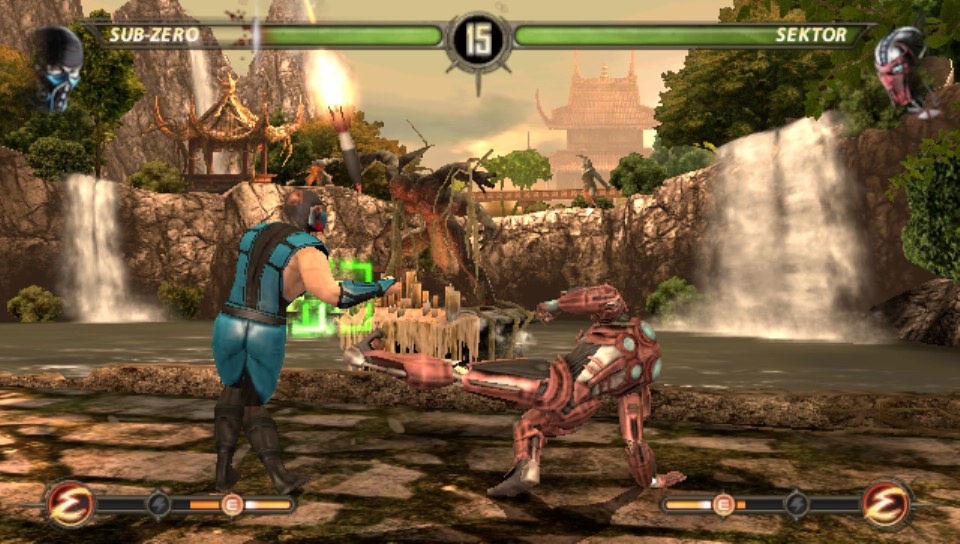 As with some previous games there is a Challenge Tower (300 events long in this case) plus an extra Vita-exclusive Bonus Challenge Tower of 150 events, with various tasks and fights, many utilising the special controls and features of the Vita, starting with you playing as Shao Kahn to take down Raiden!