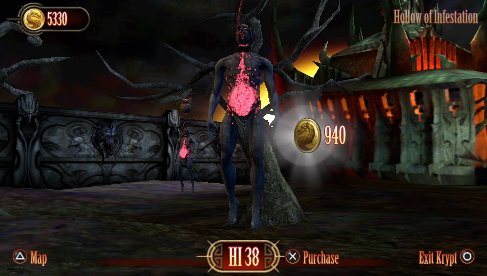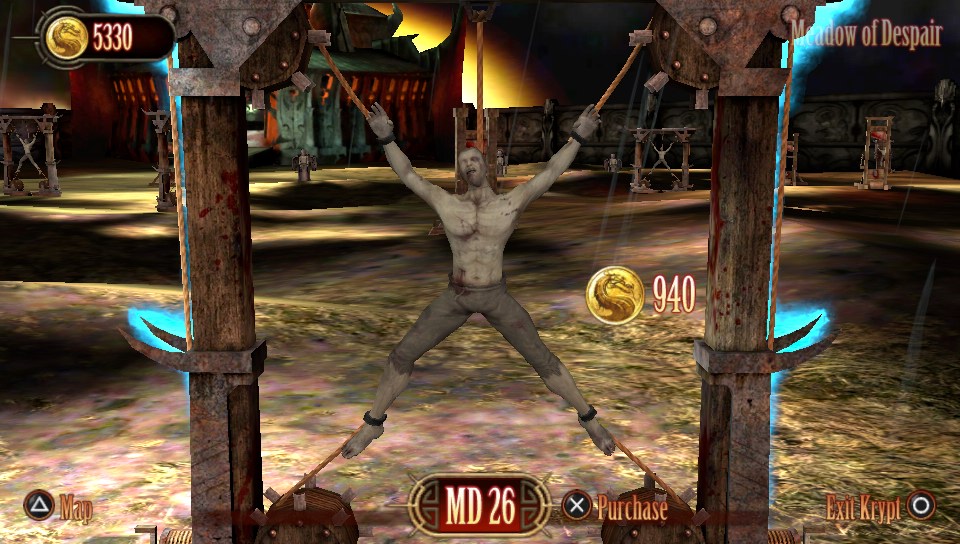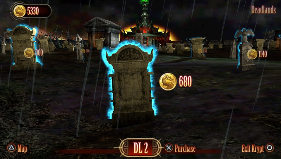 The Krypt is where you use the Koins to break open headstones in a graveyard (and, err… “break open” other things that I am not mentioning here in case there are any under 18’s reading) and thus be awarded extra content. This can take the form of artwork and music tracks you view in the gallery within the Nekropolis, as in game unlocks such as secondary fatalities moves for each character.