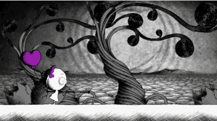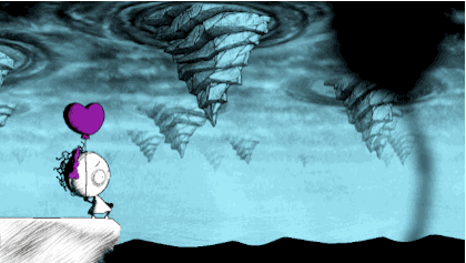 Lateral jumps are executed by a touch screen swipe across the chasm (just hope there’s no tentacle in wait to grab Baby from view, leaving you utterly helpless to save her as you watch her balloon heart speed up and give out with a burst, painting the screen with a splatter of purple blood.) Baby herself tends to deal with moving up and down platforms generally with a helping tap occasionally moving things along (for instance to get her to hop on a log so you can summon forth the rain to raise Baby to an unassailable height.)