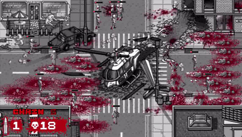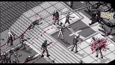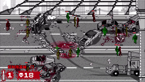 OMG-Z, which is developed by Laughing Jackal Games and is available as a PS Minis title for the PS3, PSP ansd PS Vita, also takes a slightly different path from the regular zombie shooters that we are all used to now. Yes it is primarily a shooter, but one that also adds in a little strategy and skill to make this stand out from the crowd. That can only be a good thing. The game starts with the City of Redfield (Resident Evil reference?) being overrun with zombies. No one knows how or why. An elite team of police officers are sent to deal with the threat and after a run-in with some zombies, you are all that’s left of the team and you are faced with the prospect of taking down the horde on your own!