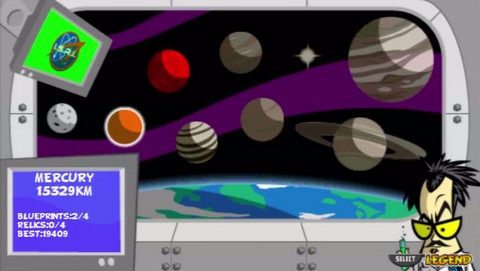 The game has you taking control of a scientist who, after a VERY lengthy conversation with another scientist, is flung into orbit around a planet within our solar system, one at a time. Starting with the Moon first (yes I know it’s not a planet!) as a tutorial. Your main objective is to make a whole orbit of each planet (and Earth’s moon). Completing this objective opens up the next planet on your map to attempt to Orbit. On your journey you can pick up gold coins (no your spare change does not go down the back of your sofa!). These in turn unlock upgrades that can help you complete your objectives. These upgrades can help improve your launcher, accuracy, your ships speed, strength as well as supplying you with one-off use boosters and a HUD that you can use to help you obtain blueprints and relics.