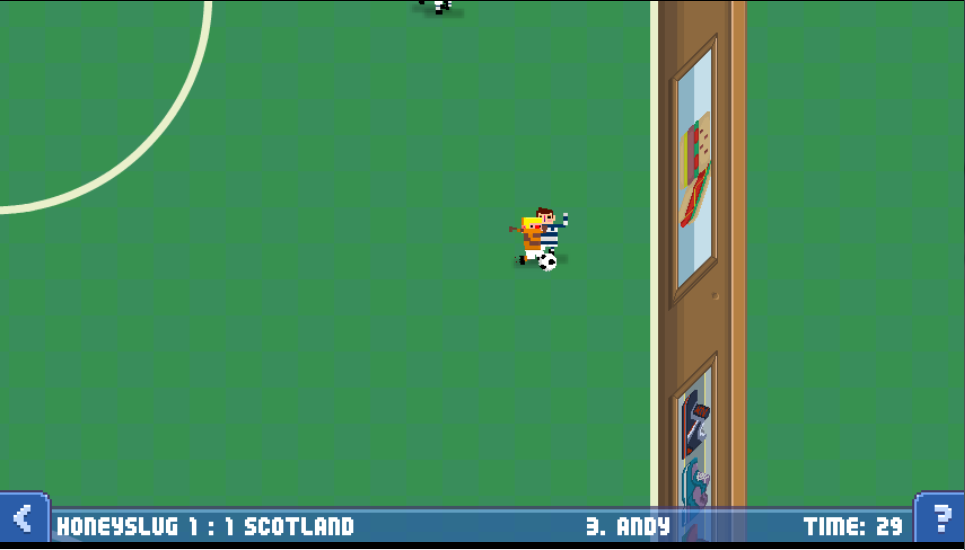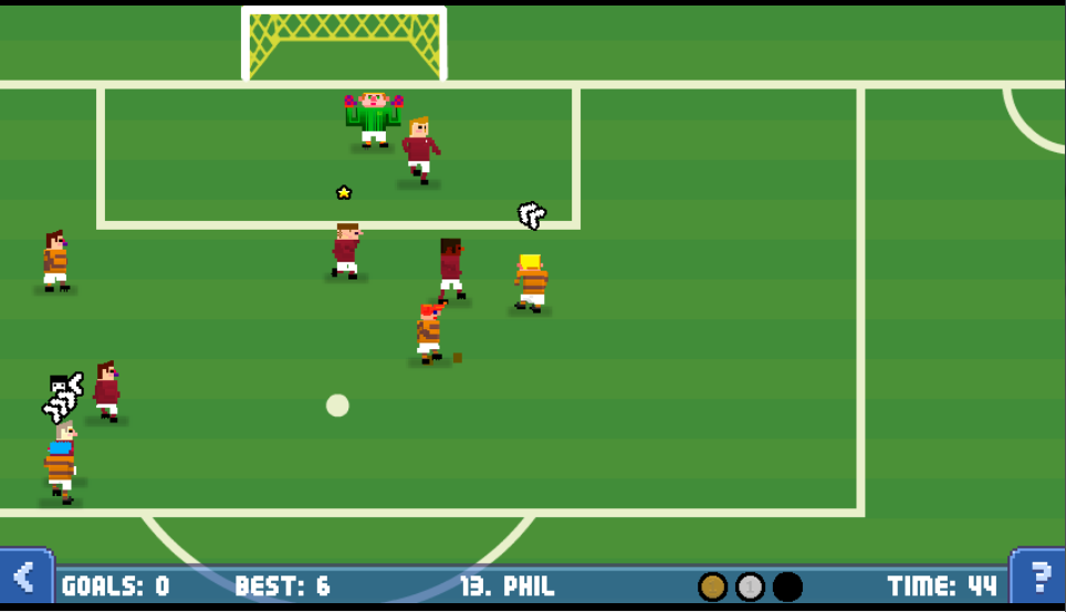 There are 5 modes to the game with matches, not even the headline act, which are 6 a side affairs against the AI. You can compete in one-off matches or play in a league against international sides. Passing mode asks you to pass the ball around your players while opposing players attempt to close you down to win the ball from you. This mode can be surprisingly frantic and also introduces a fireball that can be activated after a certain amount of passes are completed, the fireball can then be used to fry your opponents and give you more time to complete more passes. This mode can also be surprisingly addictive with the smallest of errors ruining a good run. Challenge mode asks you to complete tasks that have certain conditions attached to them. Completing these challenges actually unlocks stars that you can assign to your very own ‘Frankenstein’ team in the options menu. Here you can assign stars to your players’ control or power ratings, edit their names, heads, kit and team name for use in the matches section of the game. Having your own custom team is a nice touch and earning stars through challenge mode becomes even more important for the sake of your own team. Free Kick mode and Corner Mode fill out the remaining modes, and are essentially the same thing. The players are set up and you need to choose which players to feed the ball to for an eventual goal. It can feel surprisingly strategic and brings another welcome dimension to the game. In my opinion it may have been better to combine Free Kicks and Corners into one Set piece mode but I’m not complaining and the variety on offer is very welcome