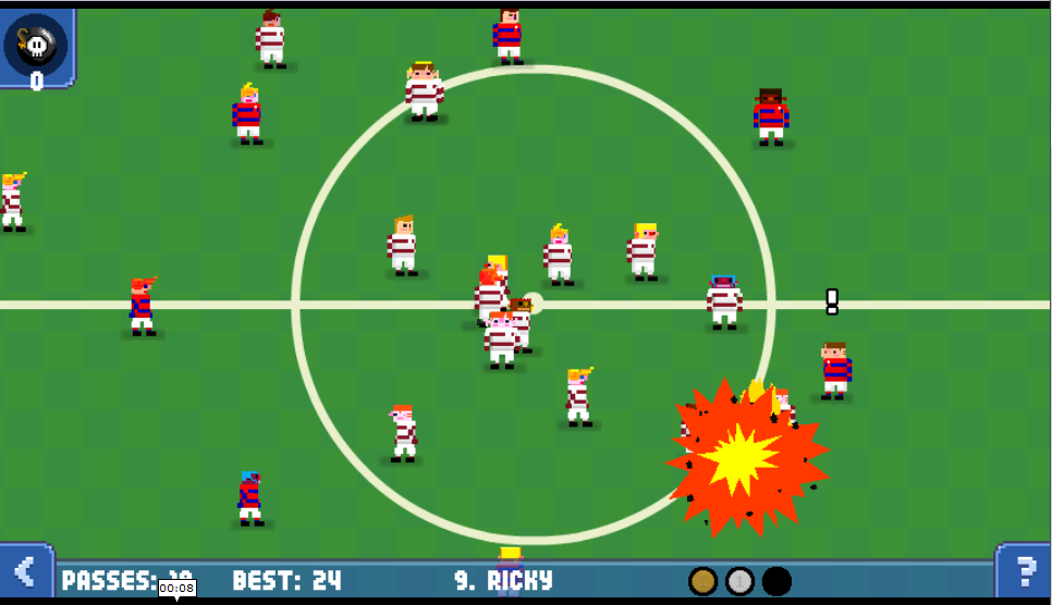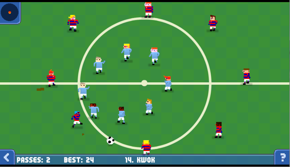 Not all is lost however and developers Honeyslug, who are responsible for Frobisher Says and the upcoming Hohokum, have attempted something different. VERY different. Passing Time, which is available for PS Vita via the Mobile section of the PSN store, takes football in a different direction away from the stadium of the big boys FIFA and Pro Evo and sets up its own game in the local park. The game sets its stall up as a touch based football game where you do not have actual control over the players, only the path of the ball. This means careful planning and keeping an eye on where your players are at all times.