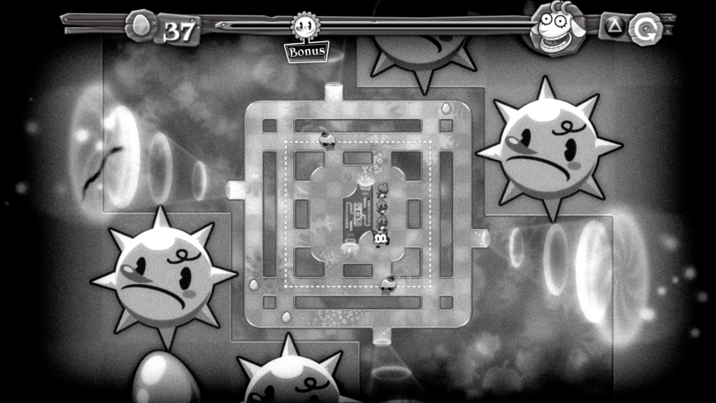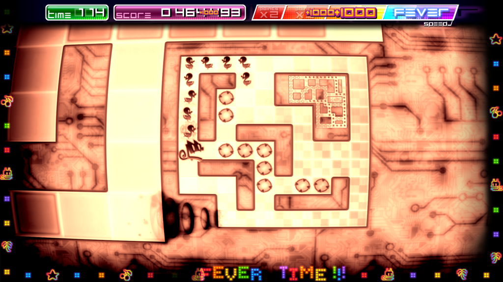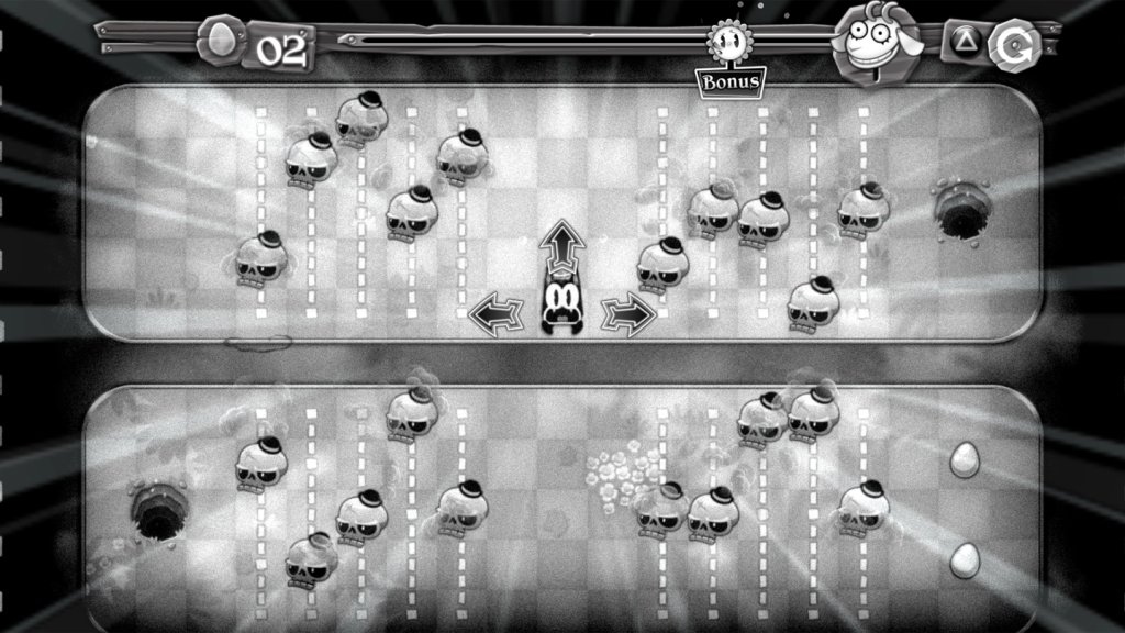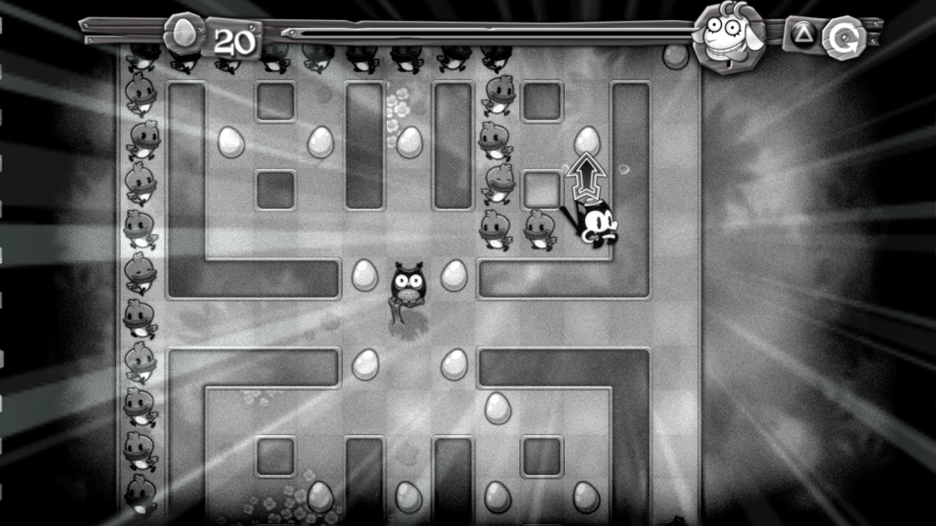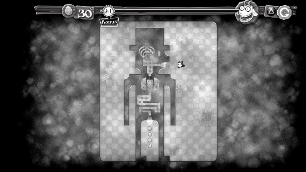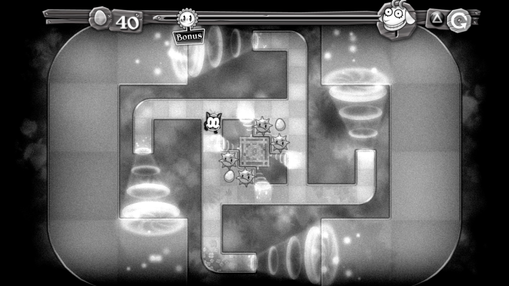 The game is full of content and great value for money. In addition to the arcade mode, which includes a number of layouts of various mazes, there is a “laboratory” mode which is more puzzle based. In this mode there is no timer, but instead Pix will not stop until he hits a wall. There is also a “Nostalgia” mode, which plays very similar to the original but with a “dated” theme, like classic black and white animation from the 1930s!