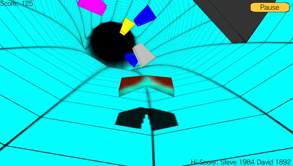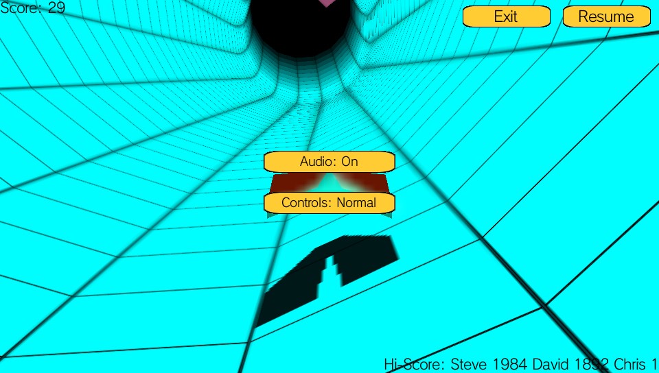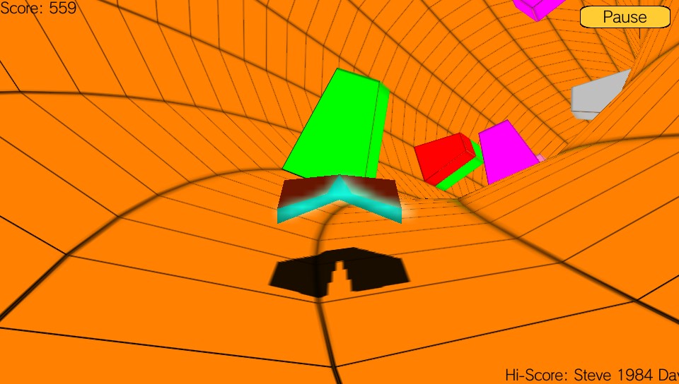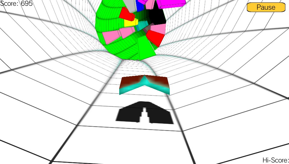 Despite its simplicity, the game is quite enjoyable in a strange way albeit only for short periods of time because of its lack of depth, but the game isn’t without its faults. As you progress through the game, the tunnel changes colour. There’s no real reason for this that I can tell apart from breaking up the visuals and to provide the player with some change of scenery so the lack of any progression does give you the impression that there’s no real objective to what you are doing. One thing I have to say that I did find incredibly frustrating in Runner were the obstacles themselves. With each being a single colour, I did encounter some that ended up being the same colour as the tunnel making them almost impossible to see until it was too late. At the same time, depending on the gradient of the curves in the tunnel, there were frequent blind spots creating moments where obstacles appeared right on top of you meaning that you needed lightning reflexes to be able to avoid them… not easy with a touchscreen interface.