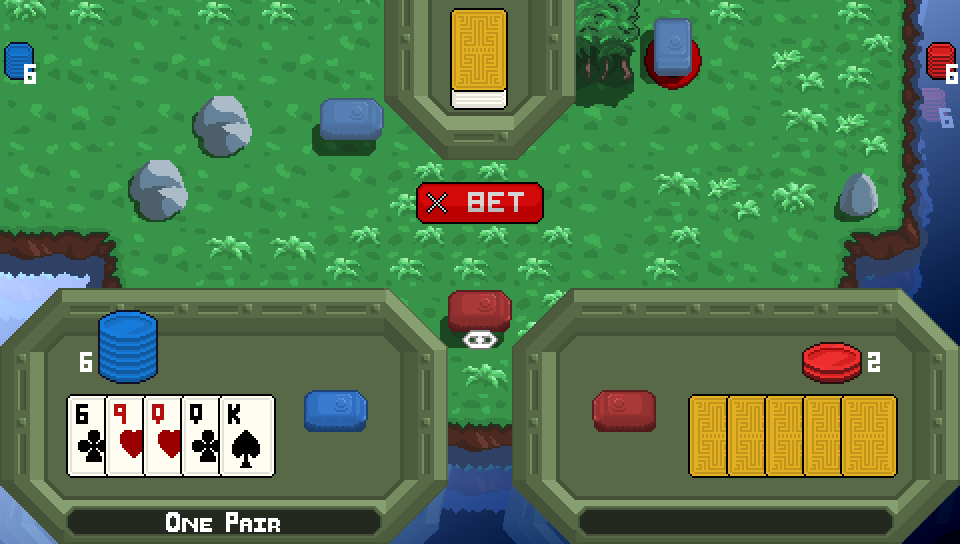 It’s quite a limited version of poker and shys away from the more popular Texas Hold-Em seen on television and more commonly played in tournaments and offers limited betting options (it doesn’t offer the opportunity to raise bets, only call them for example) but it still adds a novel twist on the less interactive combat seen in many other games of this type. Certainly, deciding whether to risk everything on a bluff and hope that the CPU will take a chance or that you can whittle them down slowly really keeps the tension high and gives the game far more long-lasting appeal than you would expect.