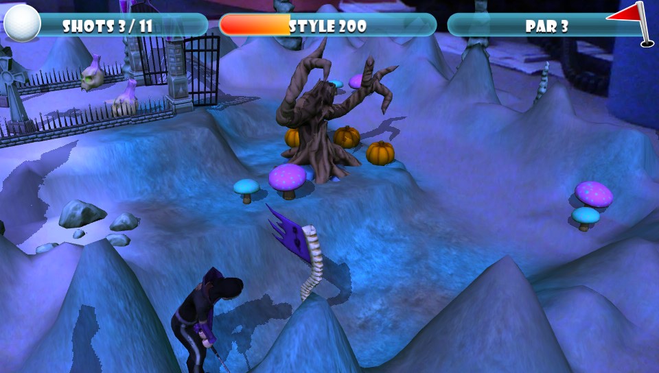 The graphics look great and really brings the world of crazy golf to life with various still and moving hazards, such as the zombie hands that pick up a ball and transport it underground through to another zombie hand that spits it out back onto a totally different area of the hole. Everything is detailed and moves flawlessly without any frame rate issues.