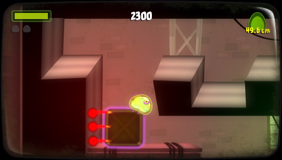 The controls are very easy to learn across the story mode and the Tilt-A-Blob levels. The controls for the story mode during normal platforming elements of the game include pressing X to jump with another press of the X button when up against a wall or an object to traverse gaps and climb walls onto higher platforms, O when in mid air or after pressing X to jump to slam into and destroy certain objects, L to attract objects, R to repel objects, the left analogue stick or the directional pad to move the mutant blob, the touch screen to use telekinesis powers to move platforms, select to self destruct and start to pause. The controls for the story mode during the rocket elements of the game including pressing X to move with the left analogue stick or direction pad held in the direction you want to travel in, while L, R or the rear touch pad can be used as a rocket boost. The controls for the Tilt-A-Blob levels are purely restricted to the Vita’s motion sensing capabilities as you tilt the Vita up, down, left or right to navigate the mutant blob through the maze and away from the circular pitfalls.