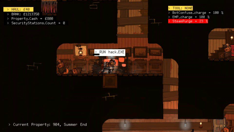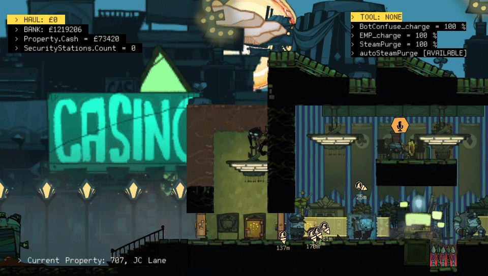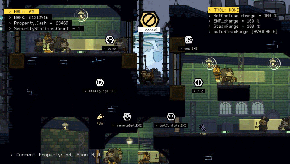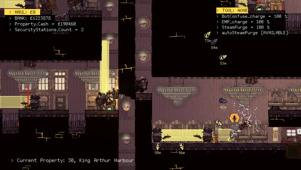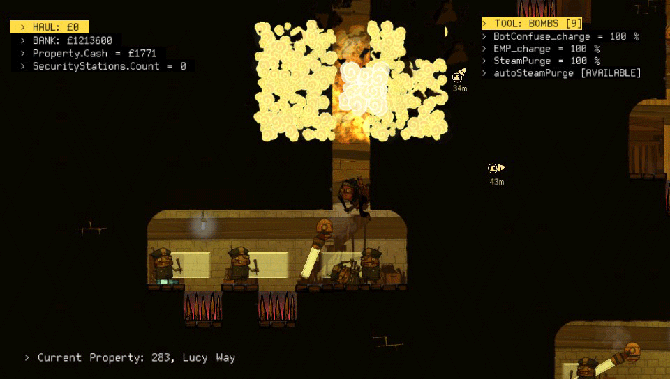 “The Swindle” is a side-scrolling RPG adventure where you have 100 days to pull of the greatest heist in history, and prevent pesky Scotland Yard upgrading their thief-catching systems.