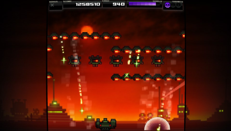 I know what you are going to say, just as I did when I first saw it. This is a clone of Space Invaders. Well, yes it is, really right at it’s core, as it’s not really a reimagining as such. This is essentially a really well produced tribute to Taito’s classic arcade 10p eater with a Galaga frosting.