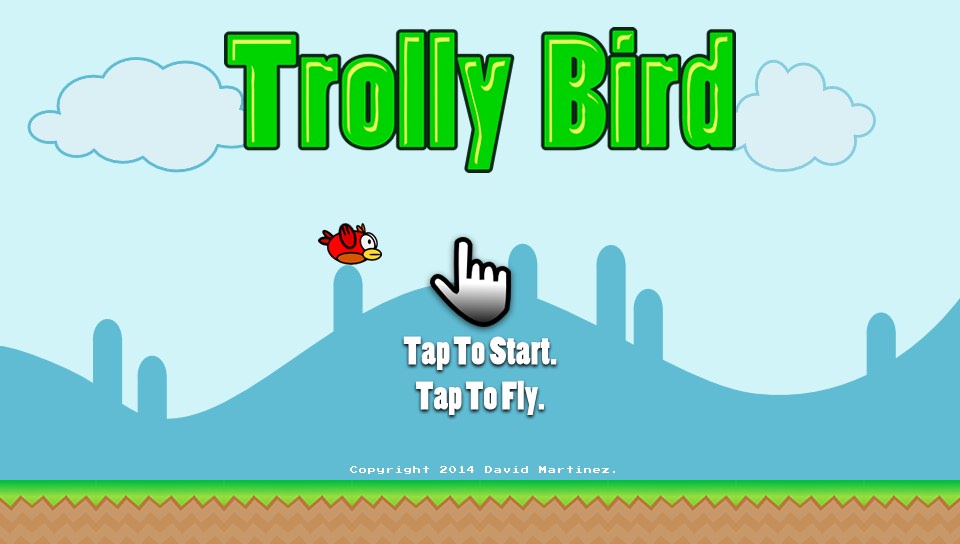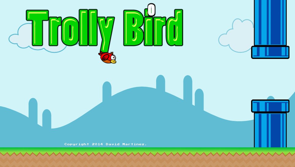 Well David Martinez didn’t think so and decided to write Trolly Bird, his own “interpretation” for PlayStation Mobile and apart from cosmetic changes it is Flappy Bird in all but name. If you’ve managed to avoid the almost hysterical hype surrounding the game, it’s a side scrolling variant on the endless runner concept where you are in control of a bird in flight. Tapping the touch screen will flap his wings helping him to fly (in bouncing motions) and to keep progressing further you have to negotiate your way through gaps that appear in pipes that are continually moving towards you at regular intervals. Collide with one of these and it’s game over, successfully pass through and you score a point and all you have to do is keep going as long as possible to keep beating your personal best score. That’s basically it and on other portable devices the simplicity of the 2013 game has proven it to be an unprecented hit with the free game receiving over 50 million downloads before it was controversially taken out of distribution.
