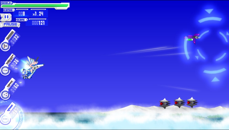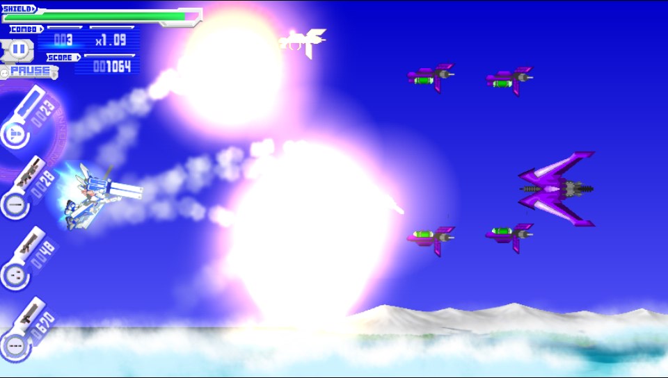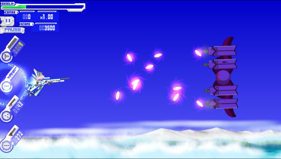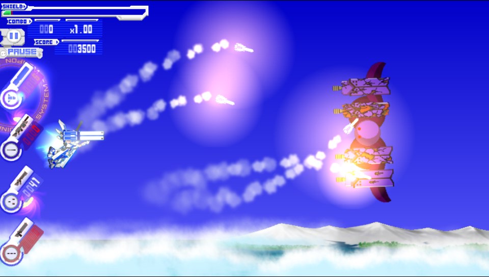 The graphics are 2D based and not overtly detailed in nature but they are sharp colourful and reminiscent of many of the best sidescrolling shooters. Enemies look and move just as you would expect them to and the bosses themselves take up the vast majority of the screen which again is another staple of the genre. There is much that veteran gamers will remember and appreciate here in the look of the game!