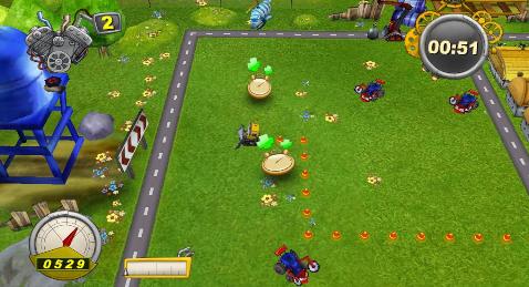 That would be simple enough if there weren’t other trucks out to stop you and – on later levels – demolition trucks out to knock down any buildings you’ve already constructed. Help is at hand with some handy power-ups that you can collect including extra lives, speed boosts and extra time… oh, yes, I forgot to mention that you’re up against the clock to complete each level so you have to think quick on your feet… err… wheels on this one.
