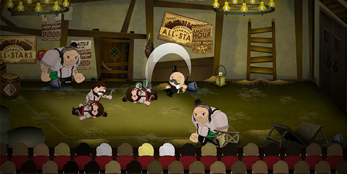 Foul Play is a bizarre scrolling beat em up (Renegade style) set on a stage in a theatre. Rather than your usual life bar, to continue to need to keep the theatre patrons entertained, so the more jumping and clapping and Mexican waves in the audience the better. You take too many hits in a row and bore the crowd – it’s game over. I must admit my first reaction was to ask why Mr Monopoly was smoking a pipe and attacking people on a stage (wasn’t he Mr. Moneybags originally?) One of the developers was present on the stand showing the PC version, and did confirm to me that they intended to have a target price of £9.99 for the PS Vita and PS4 versions, and it will be on cross buy and feature cross save too.