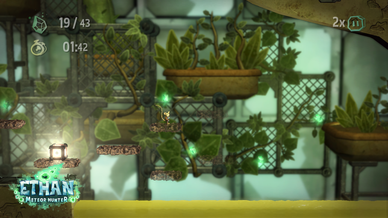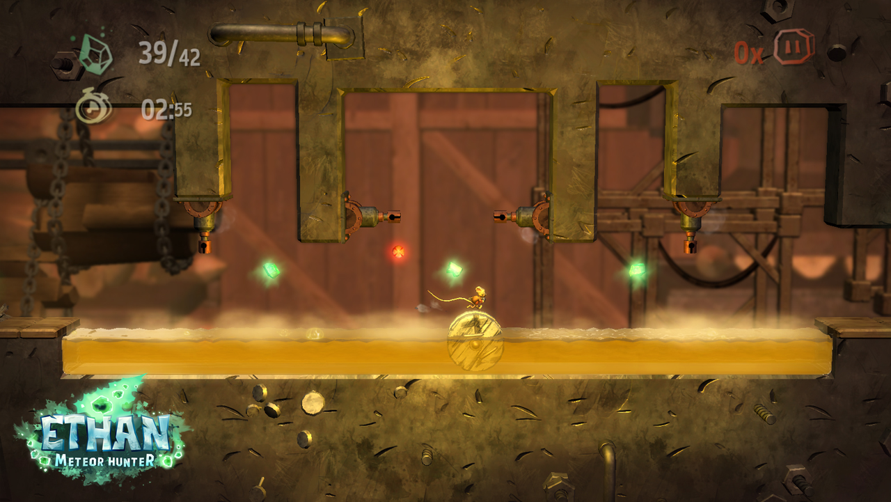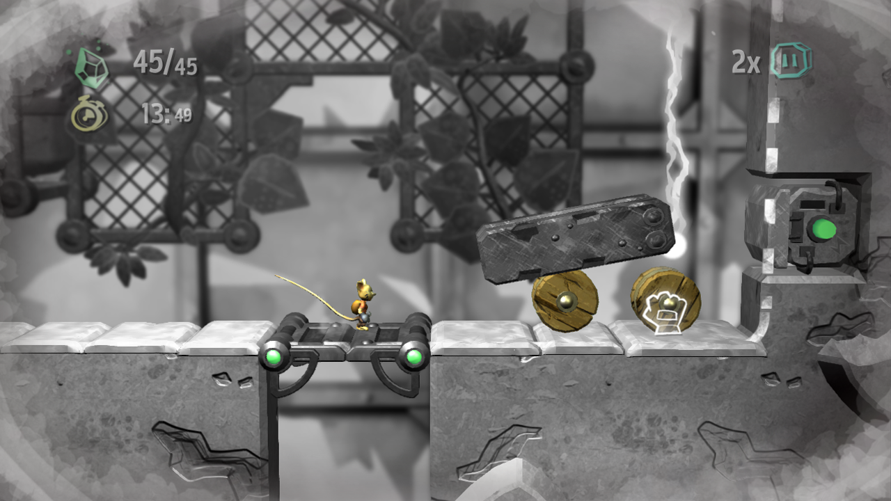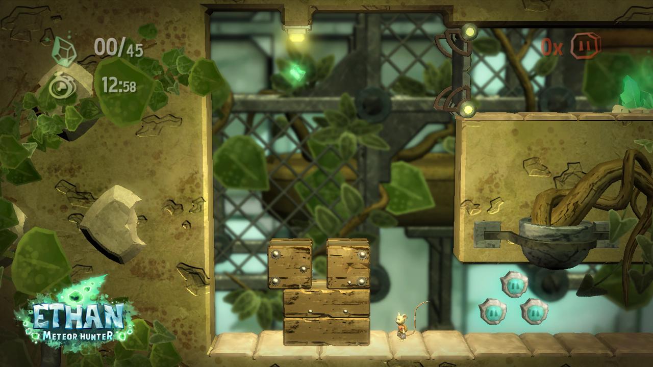 The game has you take control of Ethan (a mouse) who has been imbued with the power to bend time and space from a fallen meteor. Ethan then embarks on a quest to gather more meteor fragments in order to have his revenge on his neighbour, who has destroyed Ethan’s house (surely this should have been sorted long before getting to this point). This quest for revenge takes you through three main areas of a campaign mode that is further broken up into smaller levels that contain puzzles, platforms and an interesting combination of the two. Ethan’s extraordinary new found powers allow you to pause time and re-arrange the local environment so that you can progress through the level. Pausing the game allows you to see the puzzles and the boundaries that you can move the environment within.